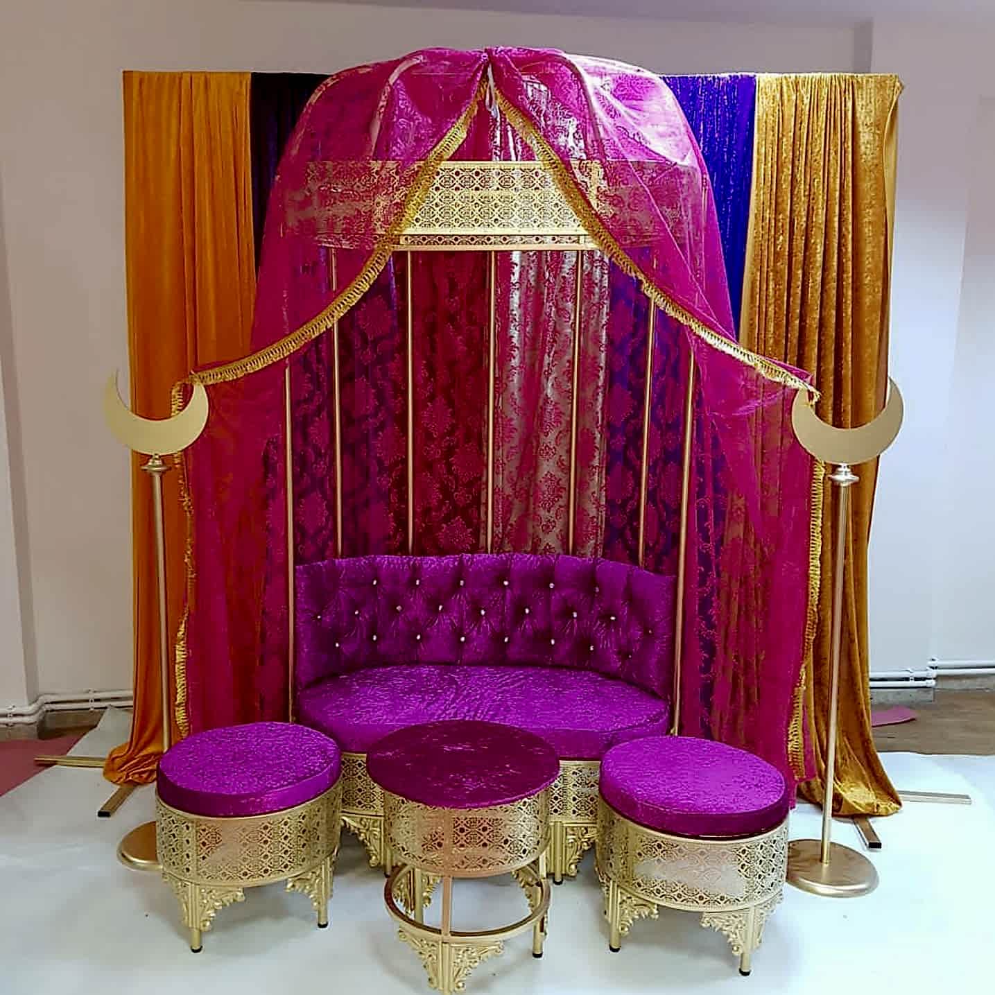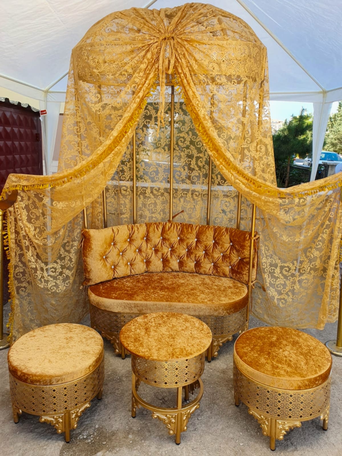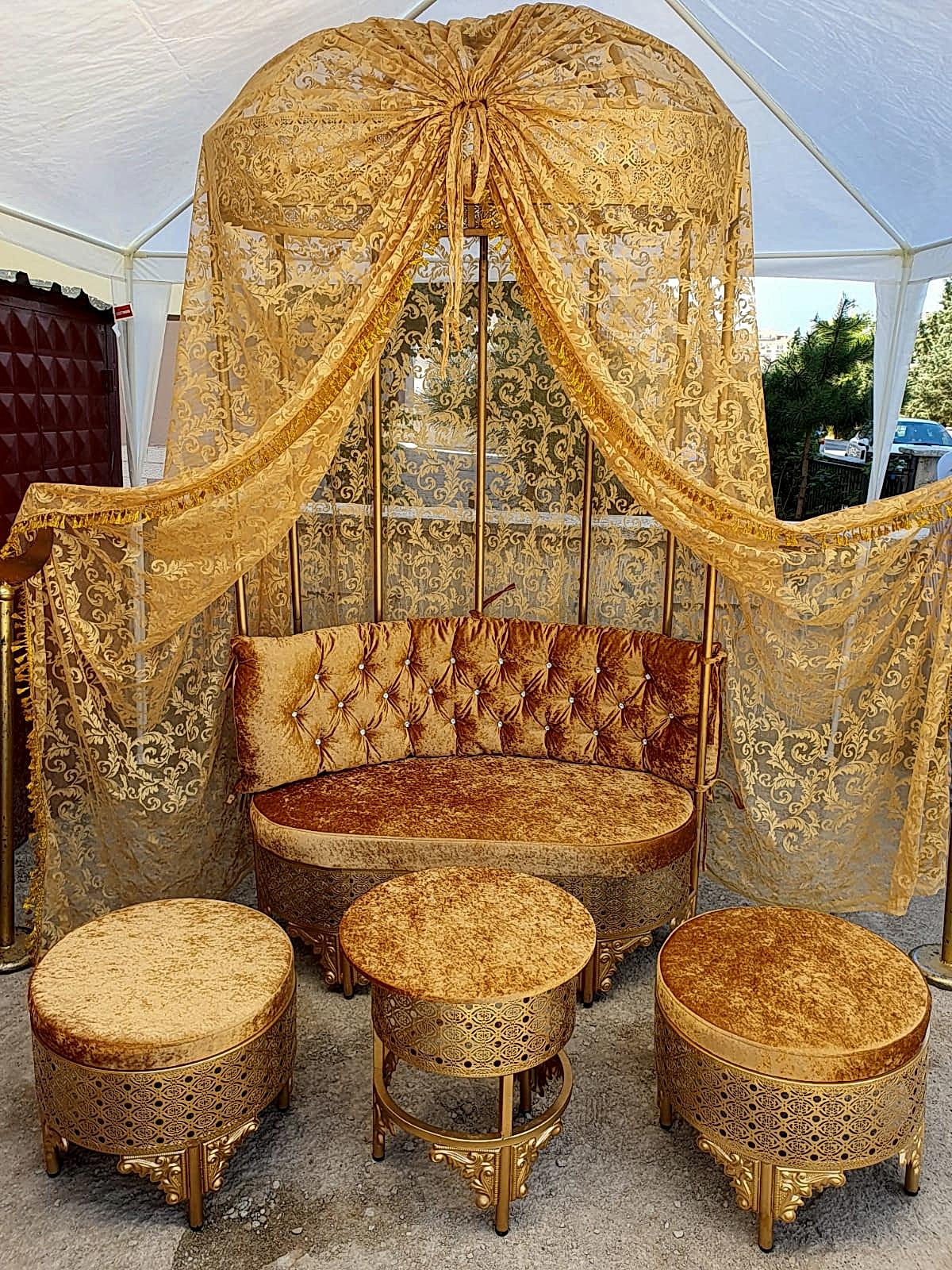 Kına tahtımızı başkent organizasyondan kiraladık. Sağolsunlar kendileri çok ilgiliydi. Çift kişilik altın varaklı kına tahtını üstelik bütün aksesuarları ile birlikte çok uyguna kiraladık. Firma nakliye ve montajı kendisi yaptı. Teşekkür ederiz…